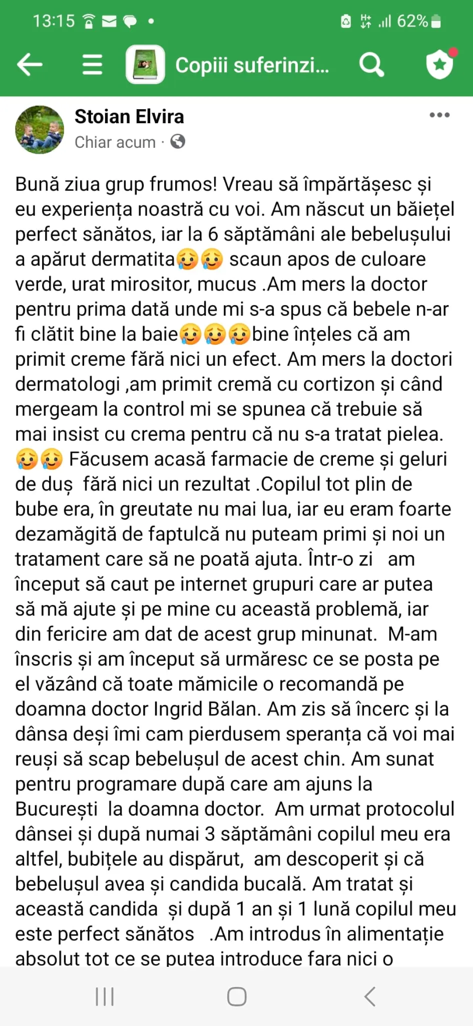 - Interpretarea analizelor poate fi solicitată numai de părinții copiilor care au fost consultați fizic de d-na dr Ingrid Balan.